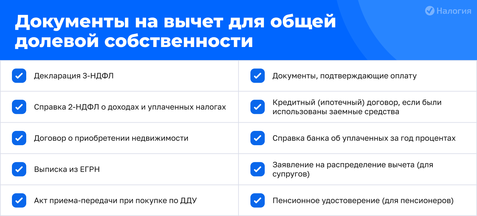За долю в квартире можно получить не только основной вычет на стоимость приобретения, но и дополнительный — за фактически уплаченные проценты в пределах потраченных сумм. Максимальный размер льготы составляет 3 млн рублей на каждого собственника.