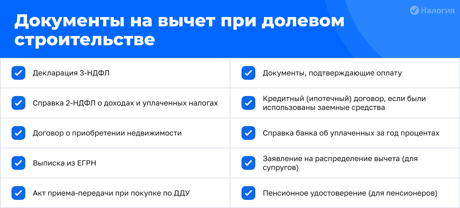 Мы рассказали, в какой момент возникает право на налоговый вычет при долевом строительстве, когда можно обращаться за возвратом в налоговую инспекцию, а также как в 2026 году оформить возврат через работодателя. Обращайтесь к экспертам сервиса «Налогия» — в двухдневный срок мы заполним для вас декларацию 3-НДФЛ на налоговый вычет при покупке квартиры по ДДУ и перешлем ее в ИФНС.
