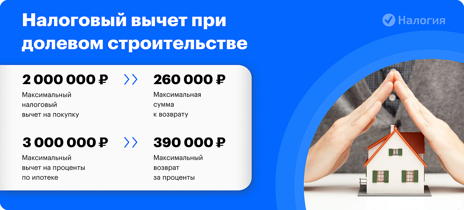 В этом случае вычет ограничен суммой 2 млн рублей (пп. 1 п. 3 ст. 220 НК РФ). Если ставка вашего НДФЛ составляет 13%, то максимально при долевом строительстве вы можете вернуть 13% от 2 млн — 260 тыс. рублей.