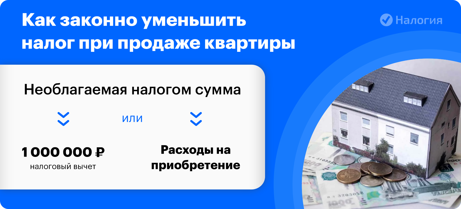 - Налоговый вычет в 1 млн рублей на стоимость продажи (ст. 220 НК РФ).