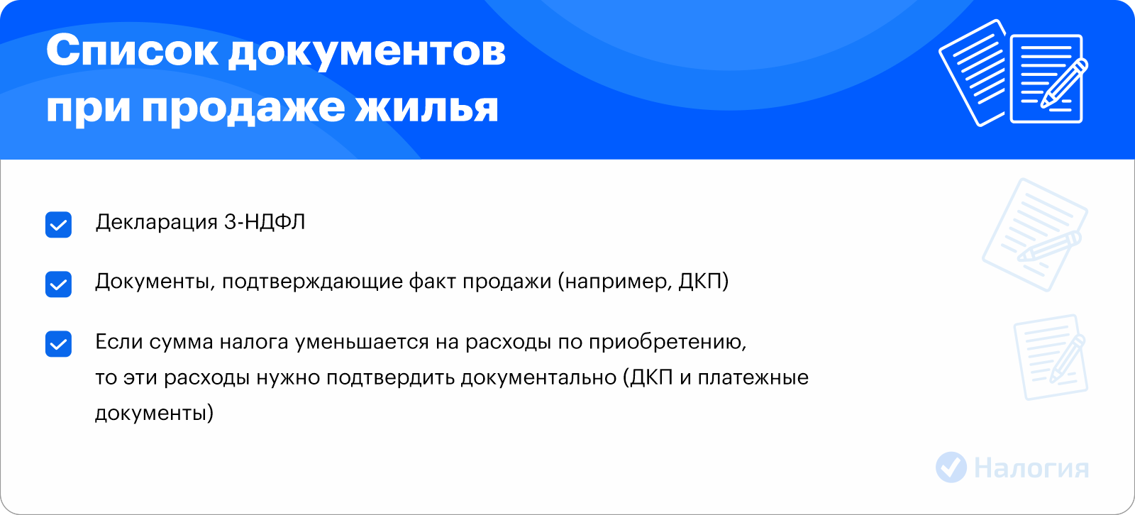 Если жилая недвижимость продается по истечении минимального срока владения, подавать декларацию и платить налог не нужно. Если срок не истек — придется отдать 13% от стоимости.