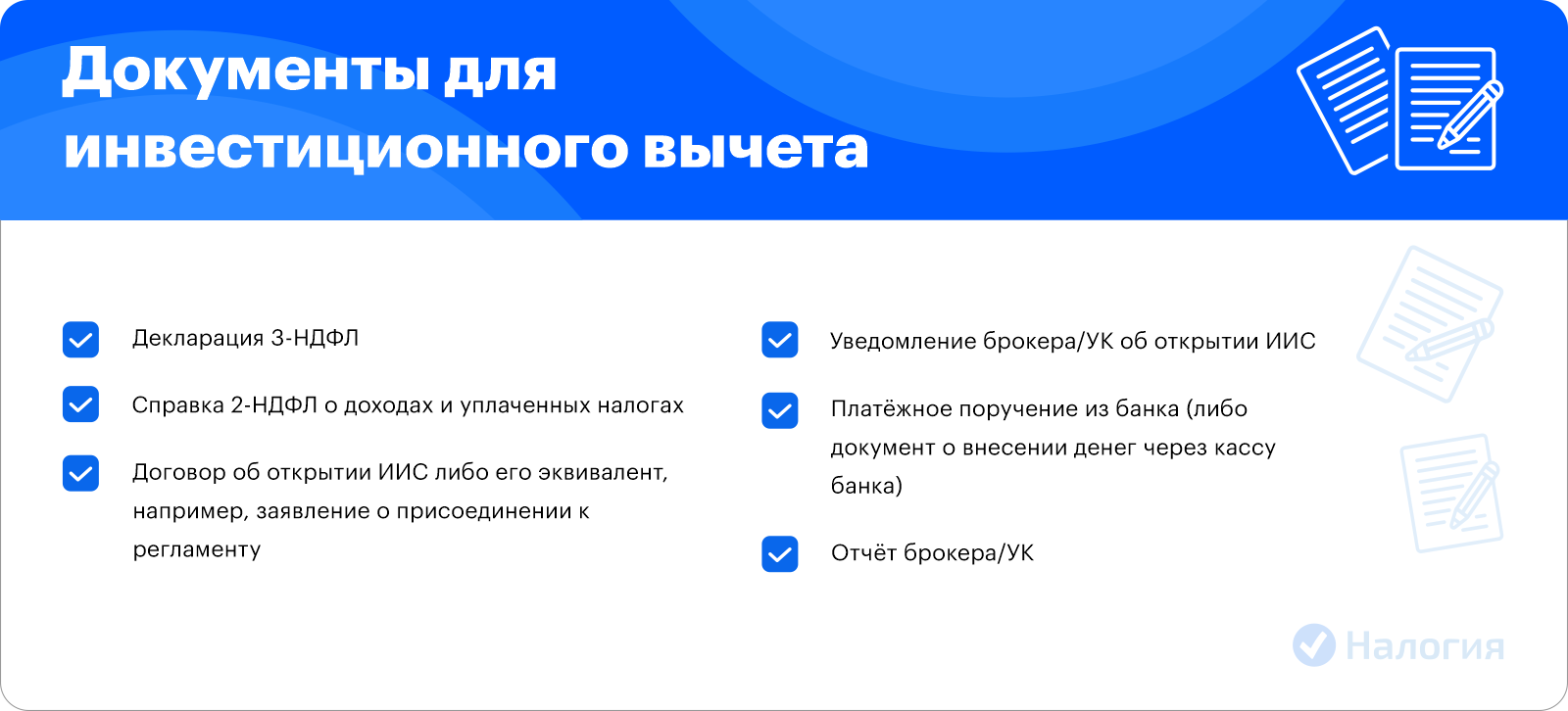 - Договор об открытии ИИС (либо его эквивалент, например заявление о присоединении к регламенту).